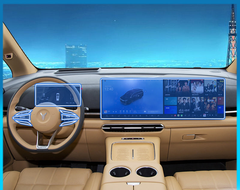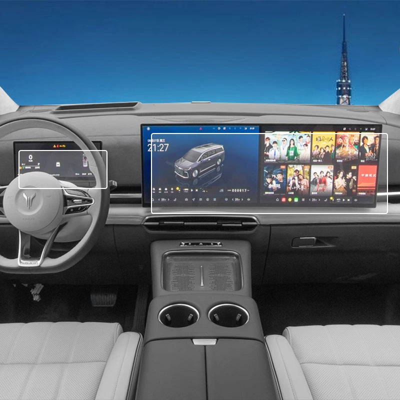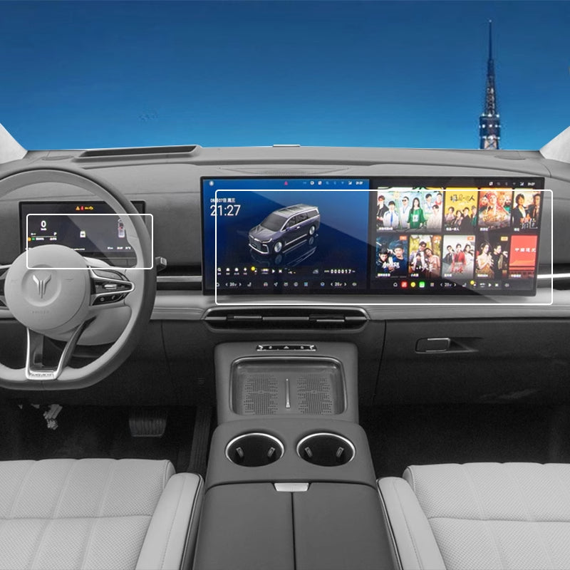 Keep your VOYAH Dreamer interior looking brand new with this premium tempered glass screen protector set. Designed for the instrument panel, navigation display, and center control screen, each piece offers high-definition clarity, scratch resistance, and anti-fingerprint protection. Custom-fit for the VOYAH Dreamer, these protective films ensure seamless installation and long-lasting durability. A must-have upgrade to protect your interior and maintain a sleek, modern look.